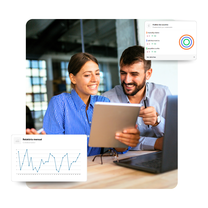 Escale sua operação sem perder a rédea. Crie hierarquias personalizadas para gerentes e supervisores. Cada líder visualiza apenas seu time, enquanto a diretoria tem a visão macro. Seja presencial ou Home Office, mantenha todos os departamentos operando sob a mesma régua de eficiência.